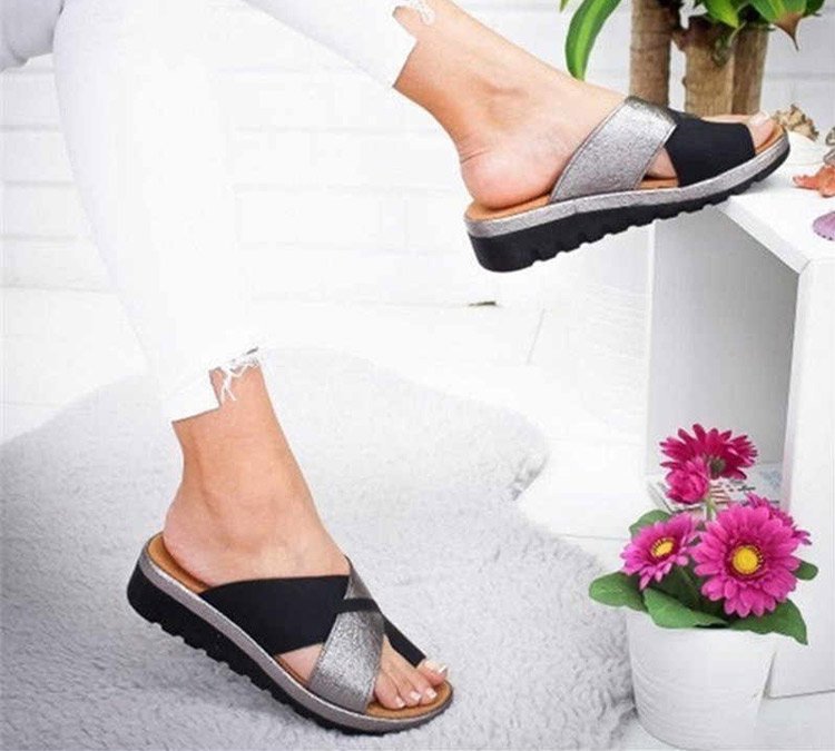 【外反母趾対策サンダル】柔らかい、ラウンドトゥ、牛革、 ウェッジソール、履き心地が快適