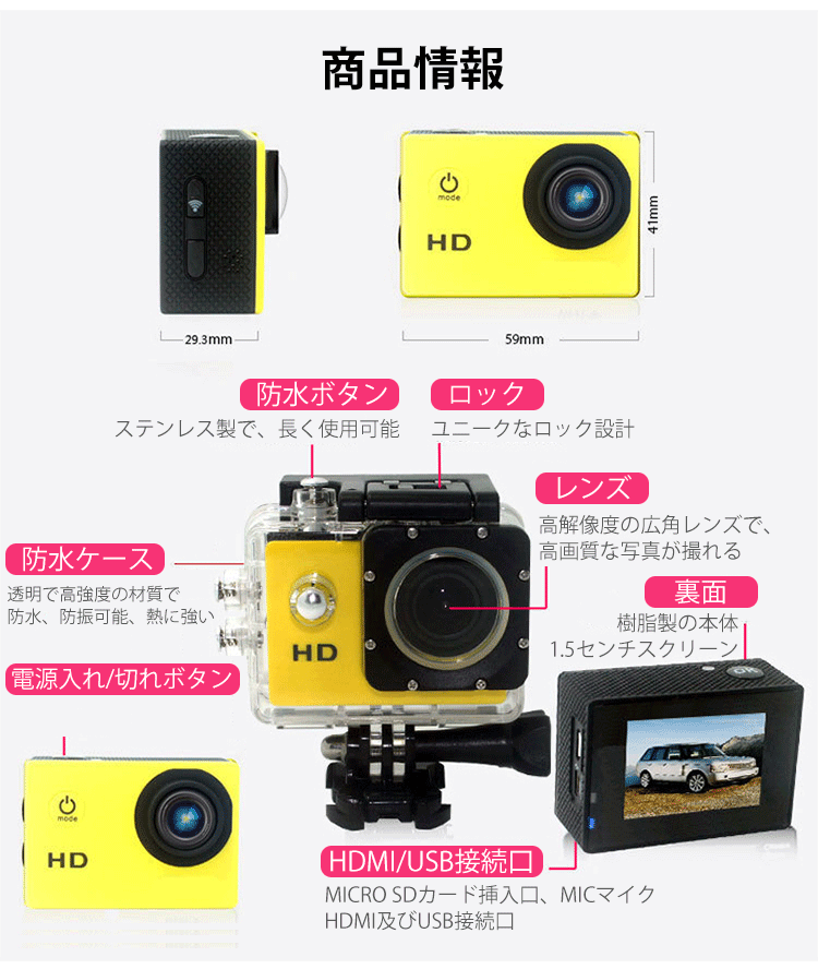 HD 1080P超高画質アクションカメラ
